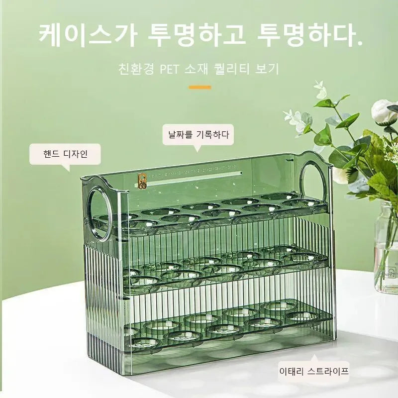 Große Eieraufbewahrungsbox für den Kühlschrank – Tragbarer Eierhalter mit mehreren Ebenen und praktischem Öffnungs- und Schließmechanismus