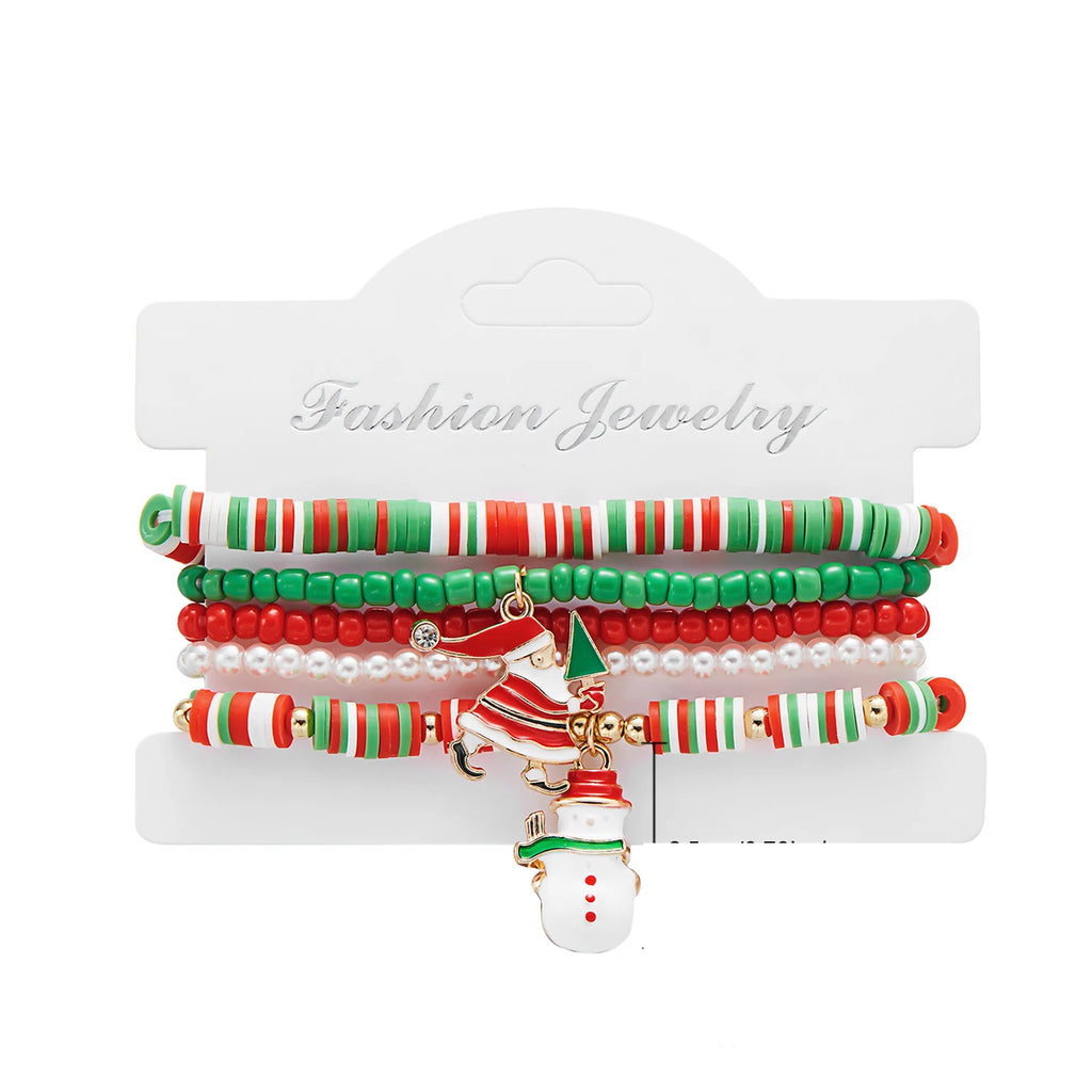 Fröhliche Weihnachten! Buntes Perlenarmband-Set für Damen mit Weihnachtsmann-, Schneemann- und Schneeflockenanhänger – Schmuck für das neue Jahr