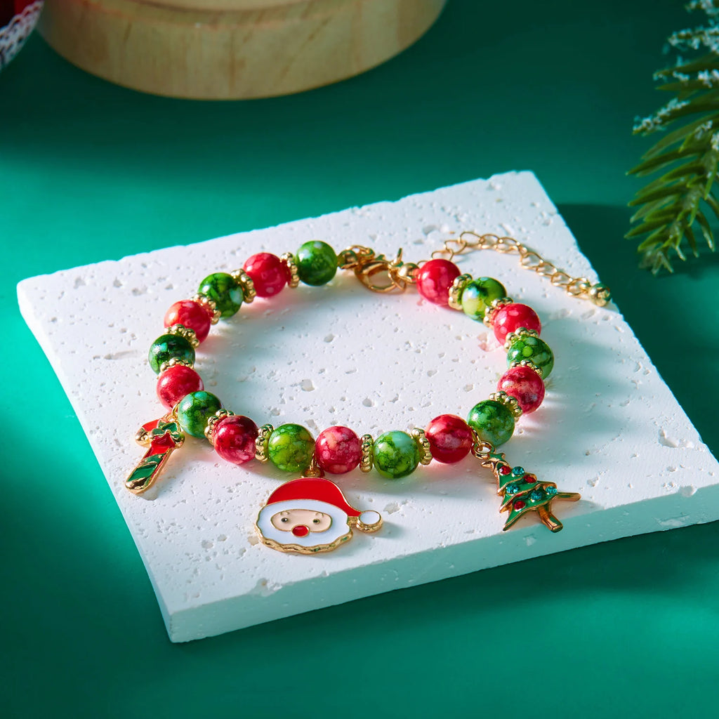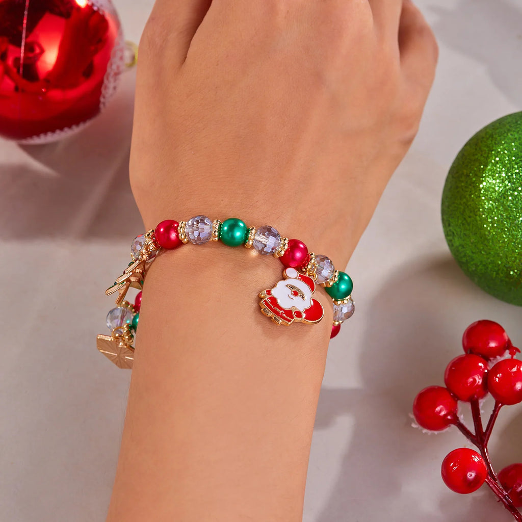 Fröhliche Weihnachten! Mehrfarbiges Perlenarmband für Damen, handgefertigt mit Weihnachtsmann-, Schneemann- und Krückenanhänger, Mädchen-Partyschmuck