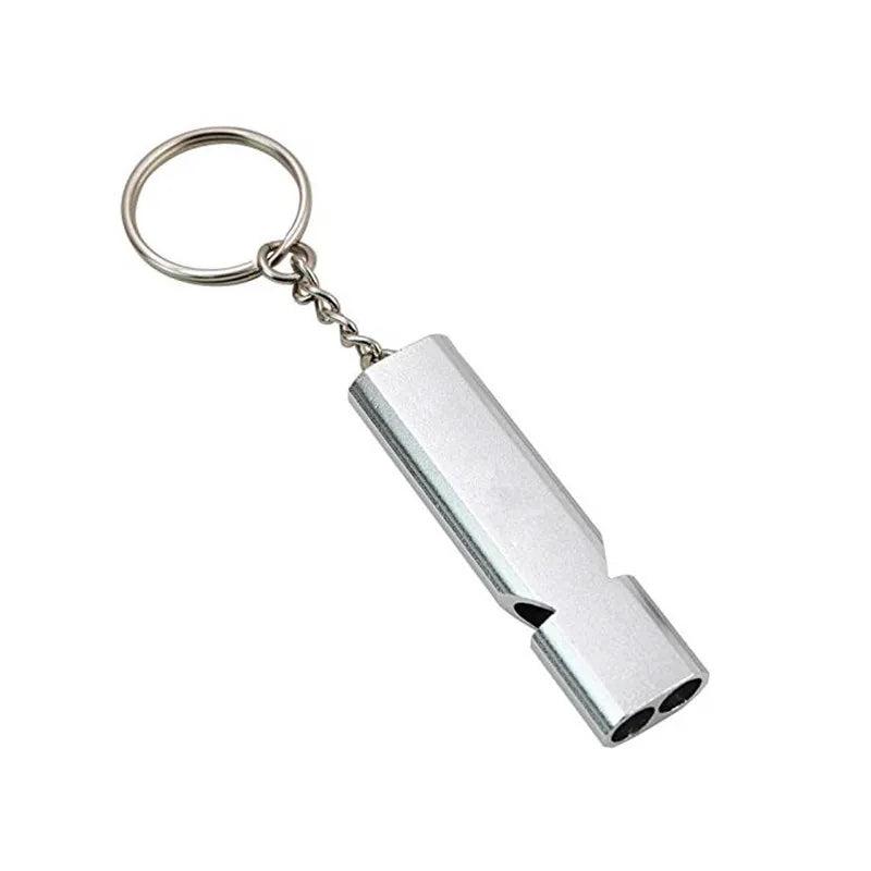 Mini-Doppelrohr-Notpfeife (120 dB) für Outdoor-Aktivitäten wie Camping, Wandern und Überleben – ideal als Schlüsselanhänger und Multifunktions-Notfallpfeife