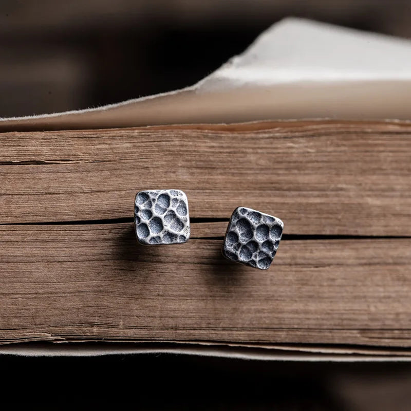MKENDN 100% 925 Sterling Silber Kreativer Retro-Ohrstecker im Monddesign, quadratisch, Punk-Gothic-Stil, Ohrstecker für Damen und Herren