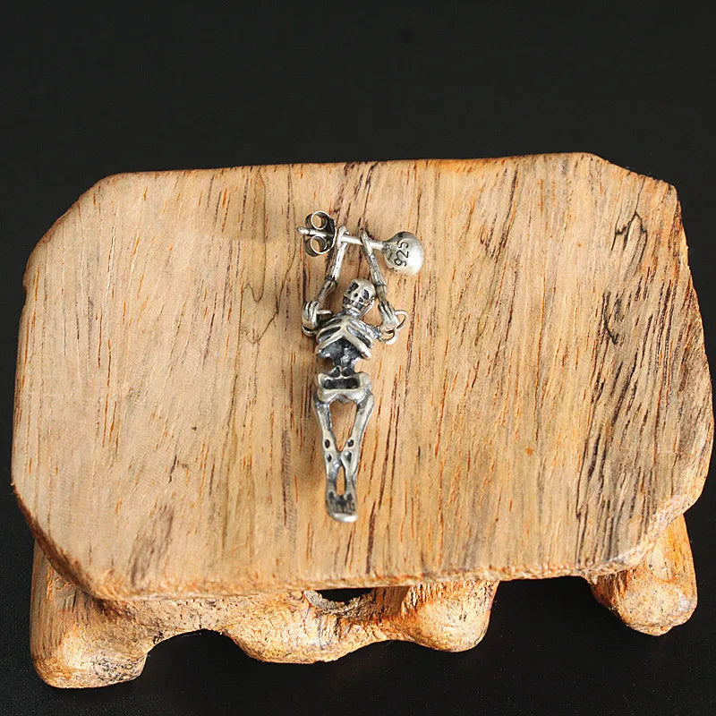 MKENDN 100% 925 Sterling Silber Kreativer Retro Totenkopf Skelett Anhänger Tropfenohrring Gothic Stil Für Männer Frauen Ohrschmuck