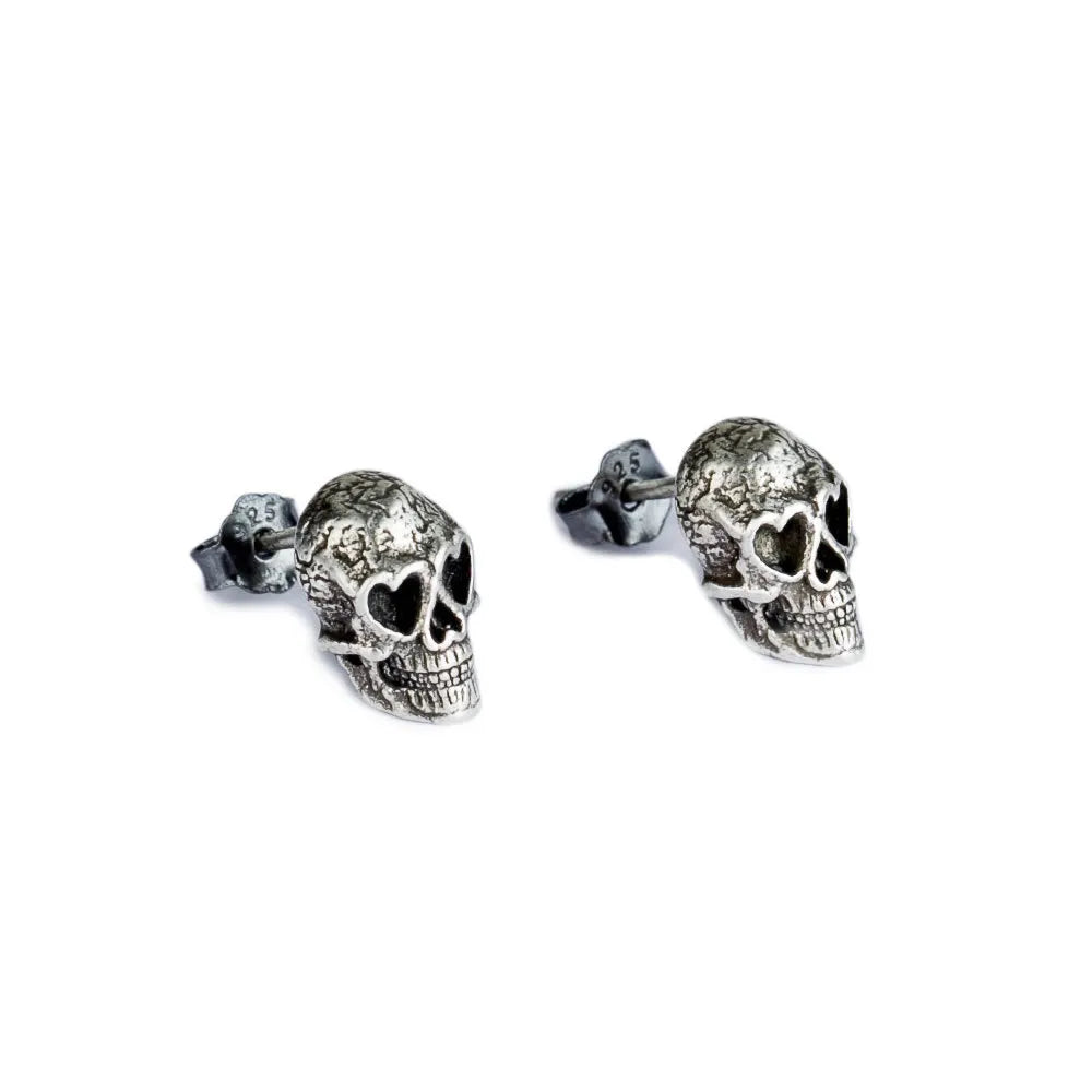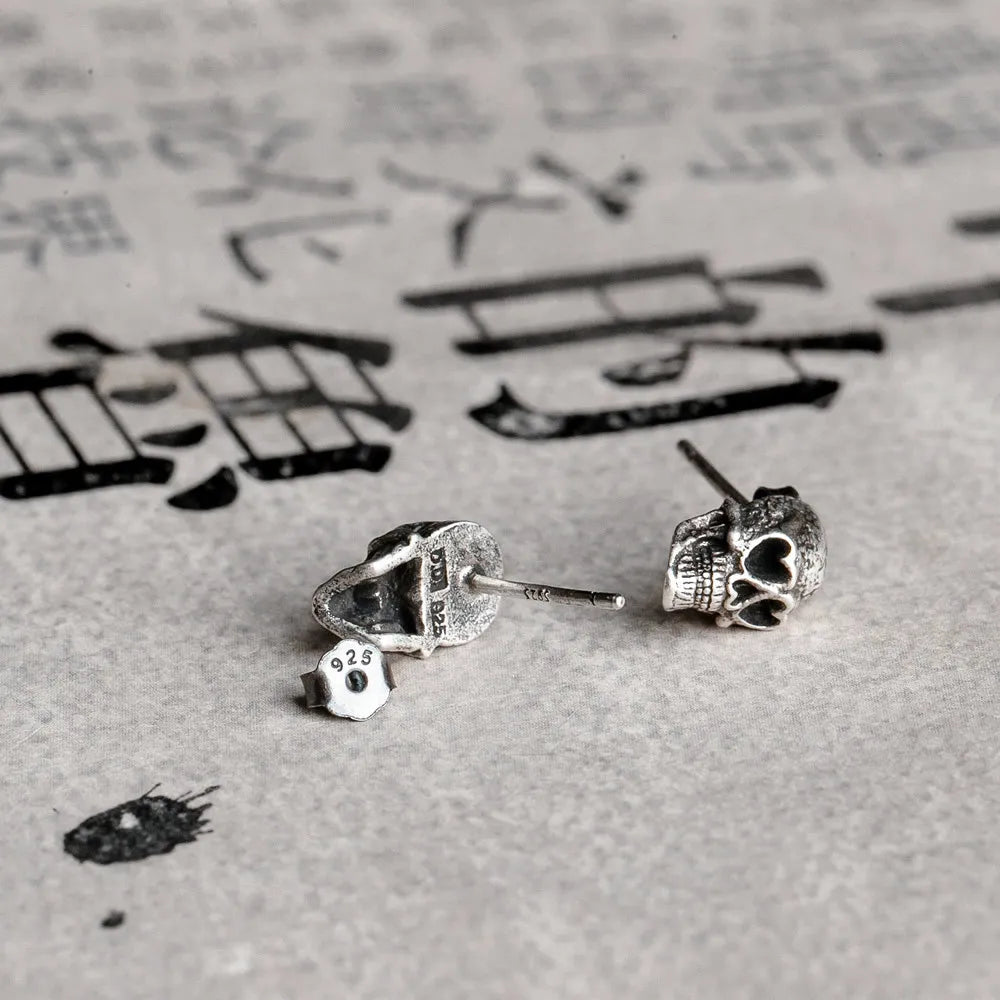 MKENDN 925 Sterling Silber Kreativer Retro Herzaugen Totenkopf Ohrstecker Punk Street Style Ohrstecker für Damen und Herren Feiner Schmuck