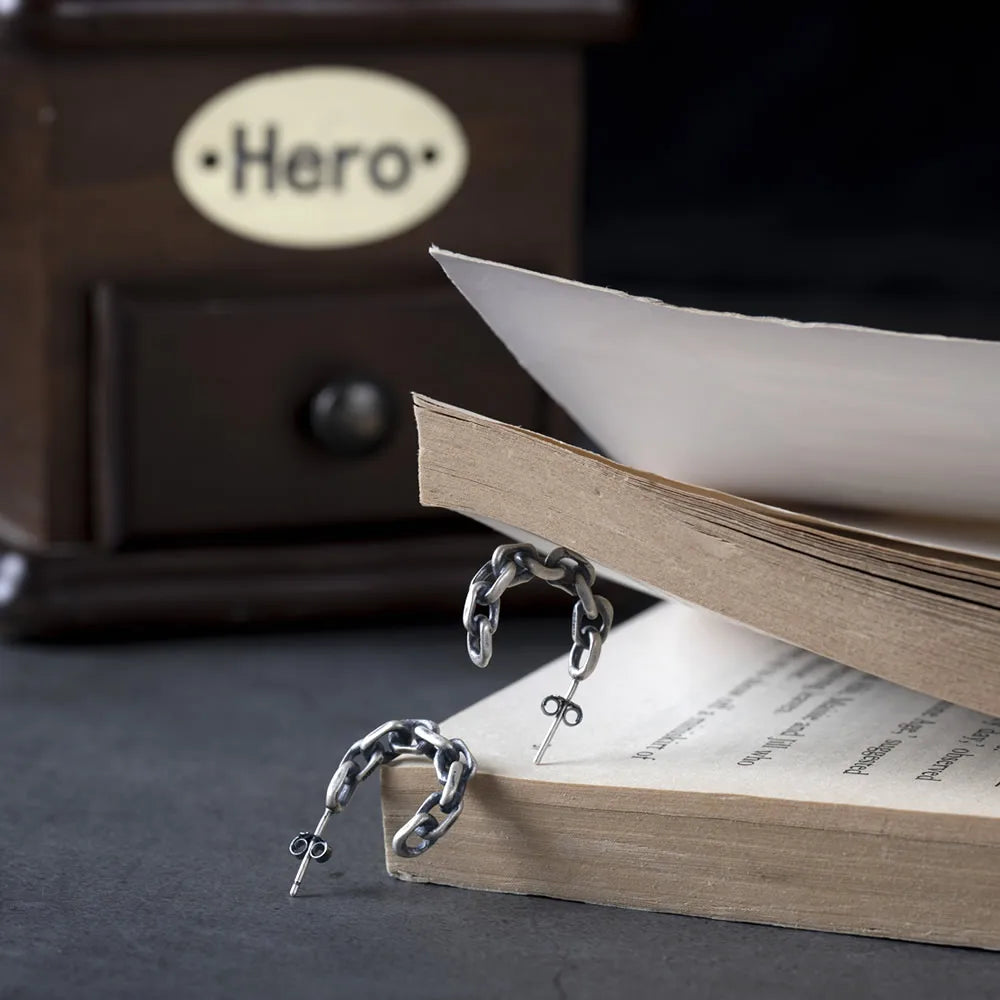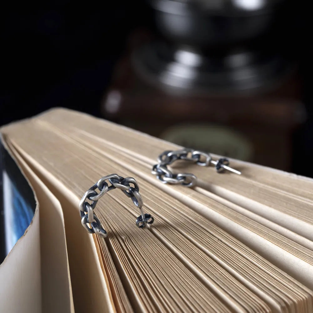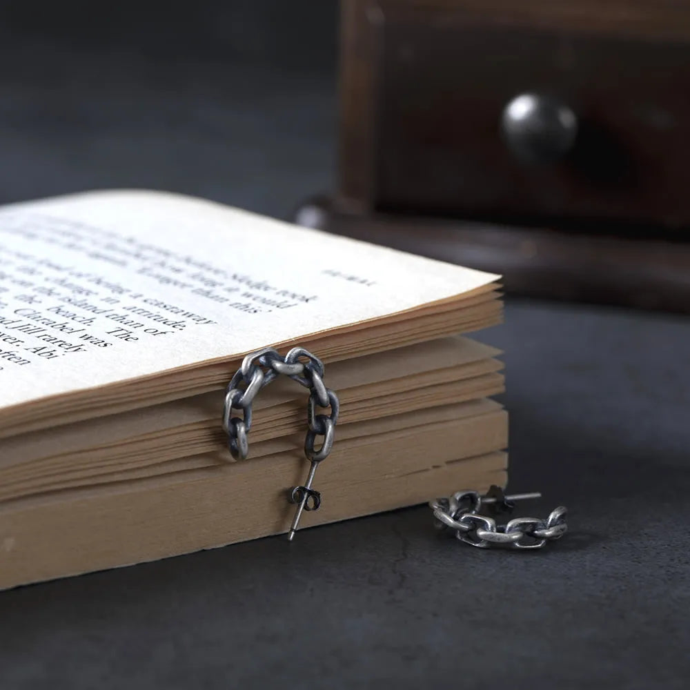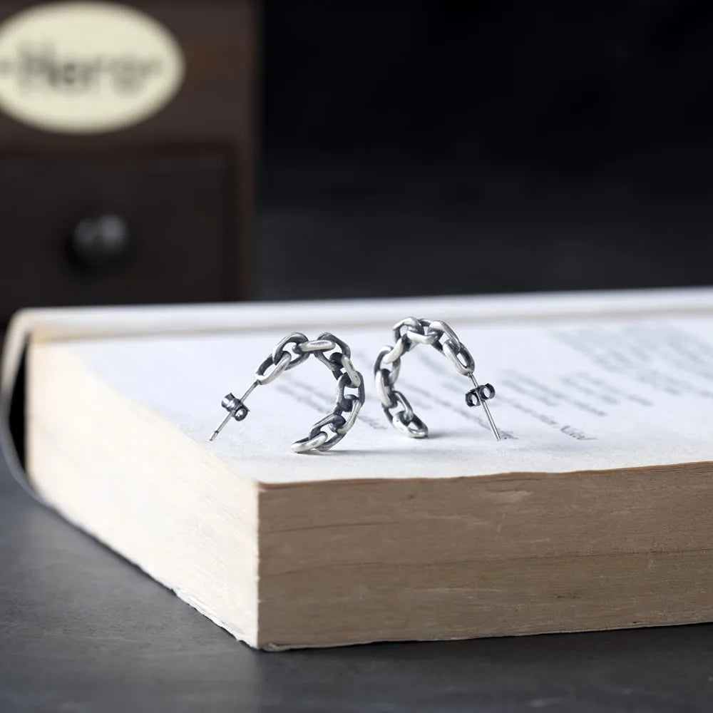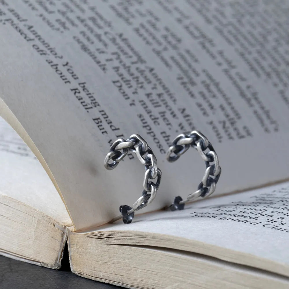 MKENDN 925 Sterling Silber Einfache Gliederkette Punk Ohrschnalle für Männer Frauen Unisex Hip Hop Ohrringe Gothic Schmuck Accessoires