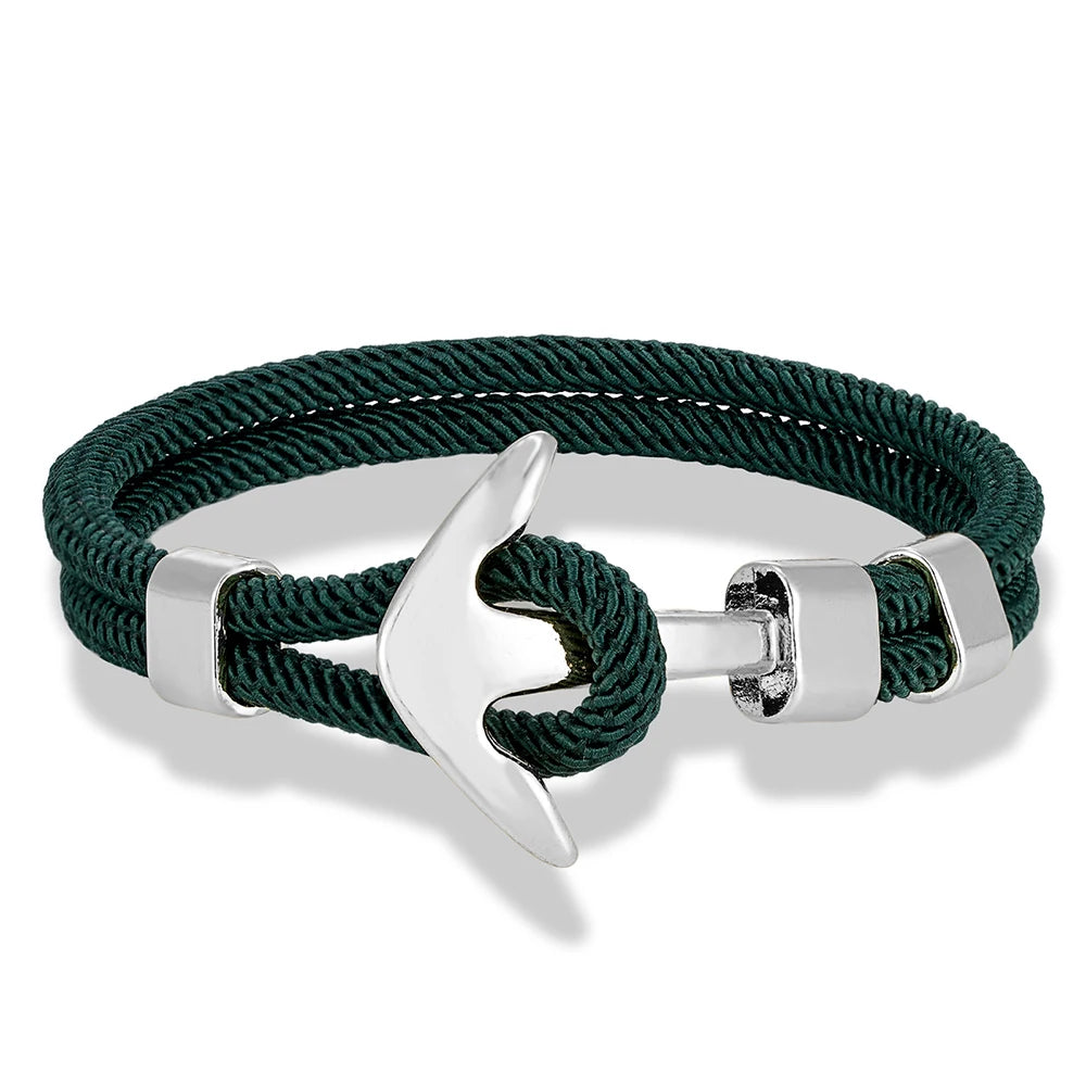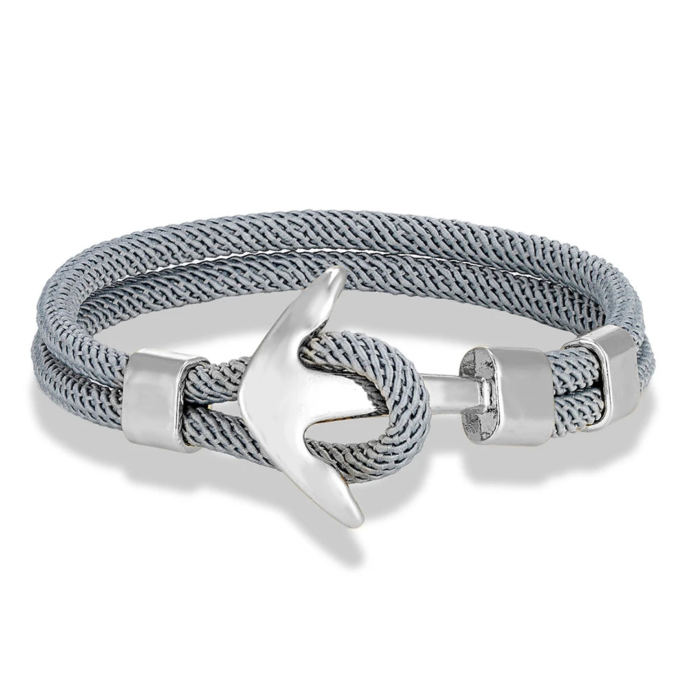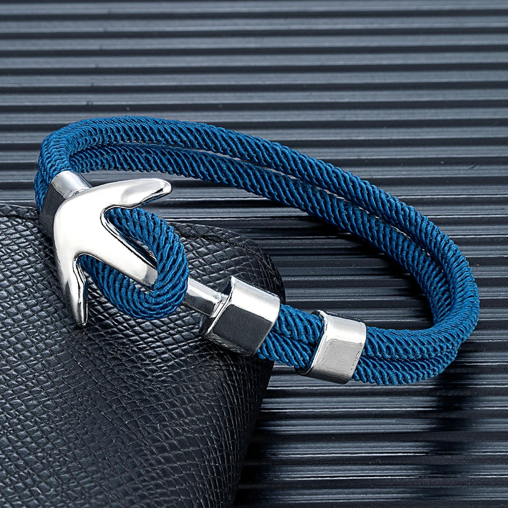 MKENDN Anker-Armbänder für Herren, doppelsträngig, nautisches Surfer-Armband, wasserdicht, Seil, silberfarben, Bootsschnalle
