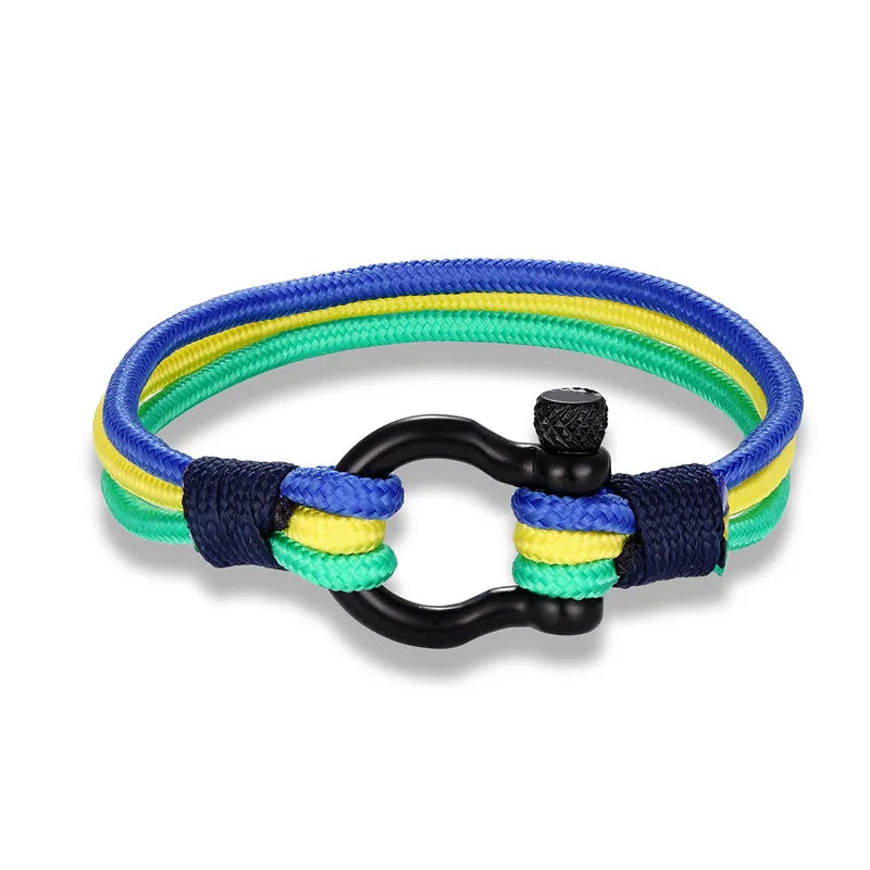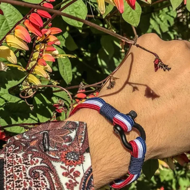 MKENDN Schwarze Edelstahl-Schäkelschnalle für Damen und Herren, handgefertigt, mehrlagiges Webmuster mit US-amerikanischer, französischer und spanischer Flagge, Schmuckgeschenk für Paare