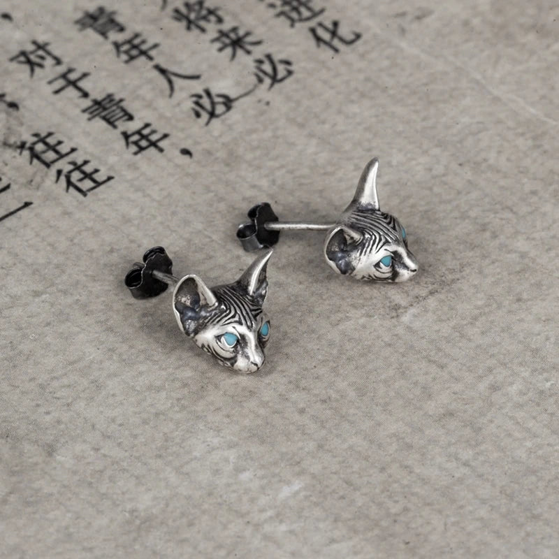 MKENDN Ohrstecker mit blauäugiger Sphynx-Katze, Meditations- und Yoga-Motiv, für Damen und Herren, Sterlingsilber 925, antiallergischer Schmuck