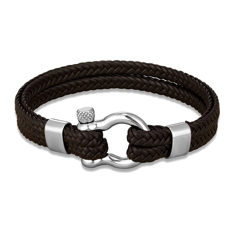 MKENDN Armband mit Schäkel in Bogenform, doppellagig gewebtes Lederarmband für Männer und Frauen, Edelstahl, Hufeisenverschluss mit Schraube