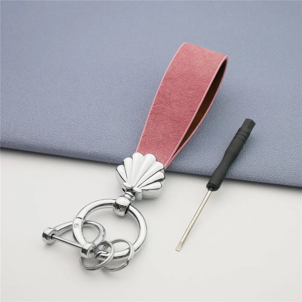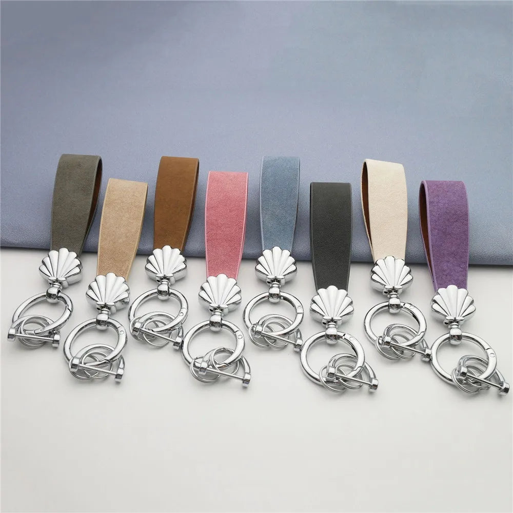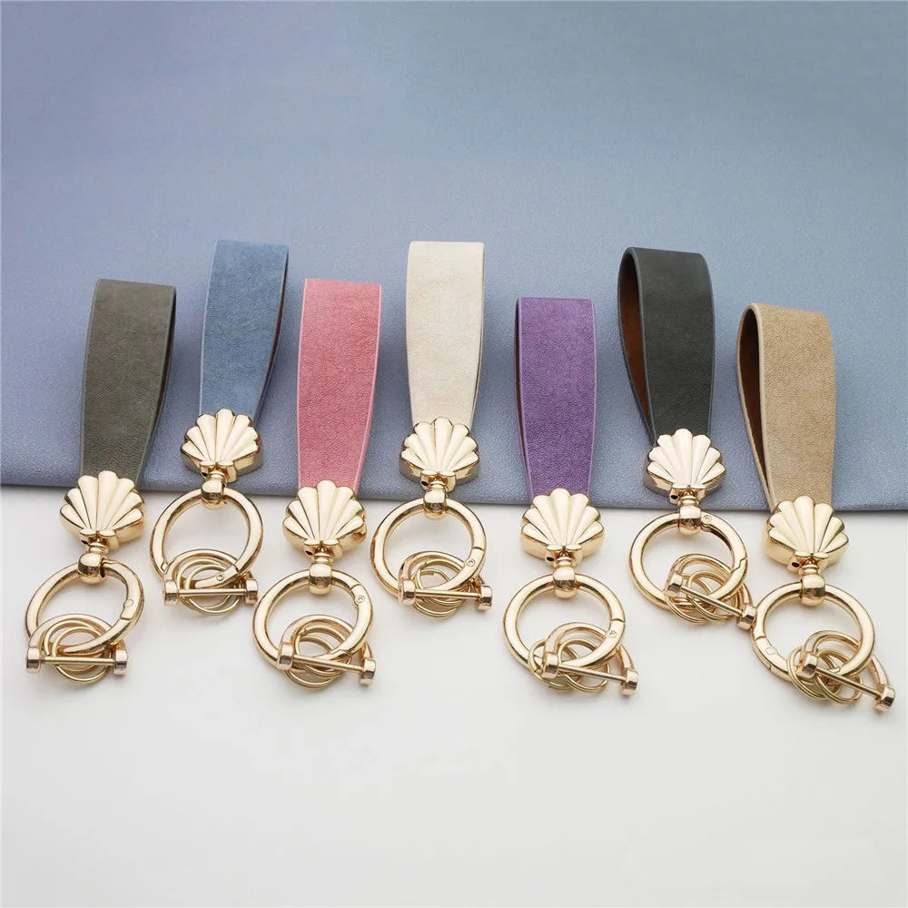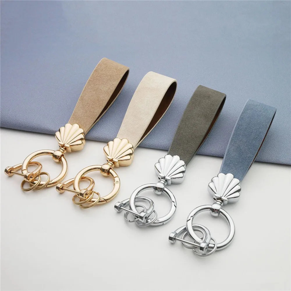 MKENDN Niedlicher Muschel-Schlüsselanhänger, goldfarbener Metalleinsatz, klassischer Leder-Autoschlüsselanhänger, romantisches Geschenk für Frauen