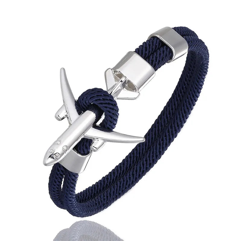 MKENDN Modische Flugzeug-Anker-Armbänder für Herren, Herren und Damen, Charm-Seilkette, Paracord-Armband im Air-Force-Stil, Wickelarmband mit Metallhaken