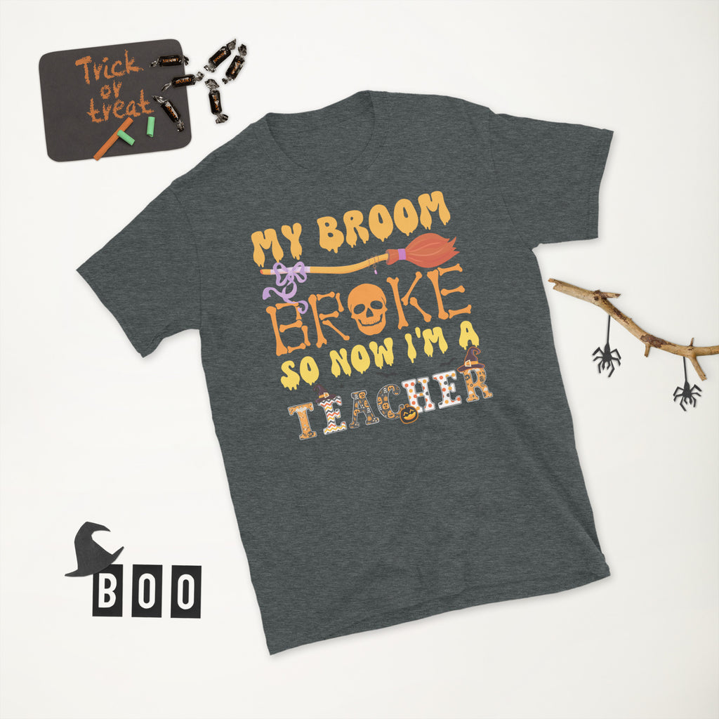Mein Besen ist kaputt, also bin ich jetzt Lehrer, Halloween Lehrer Shirt, Lustiges Halloween T-Shirt, Gruseliges Lehrerkostüm, Trick or Teach Retro T-Shirt