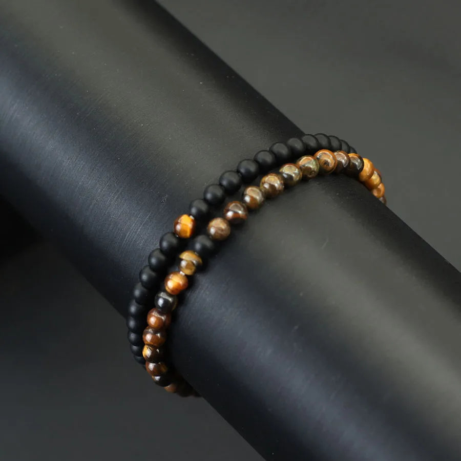 Neues 2-teiliges Armbandset mit 4 mm Perlen für Herren, Tigeraugen-Türkis-Paar, Heilarmband, handgefertigt, lässiges Accessoire für Herren