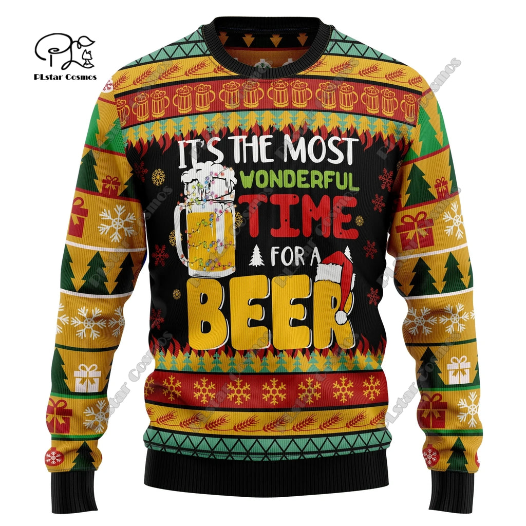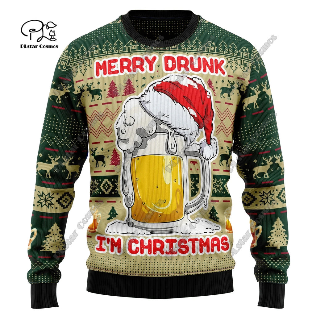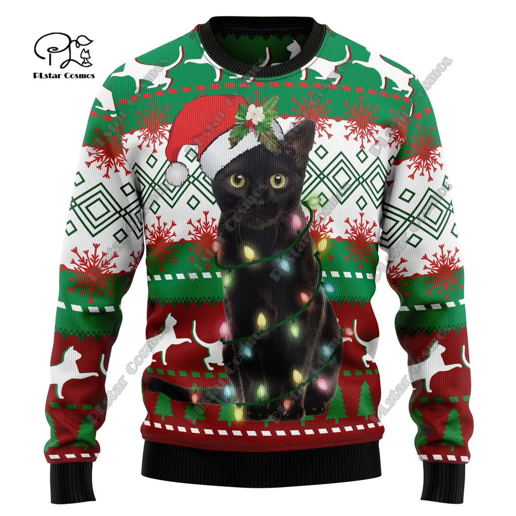 Neue 3D-gedruckte Weihnachtsmotive: Weihnachtsbaum, Weihnachtsmann-Muster, Kunstdruck, lässiger Street-Sweater, Winterpullover, Größen S-8