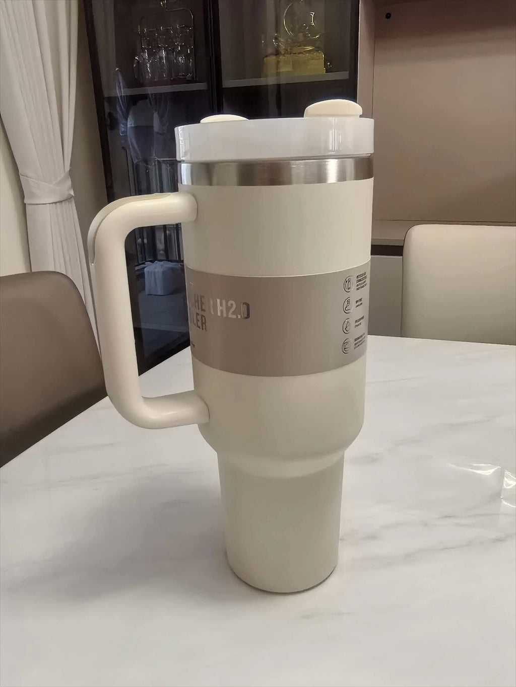 New 40-ounce vacuum straw thermos, stainless steel car sports water bottle, can hold cold and hot beverages