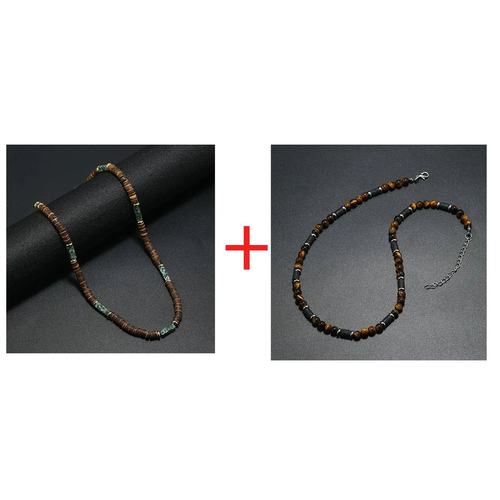 Neue Herren-Perlenkette im Boho-Stil mit Tigerstein, Naturstein, modisches Design, minimalistische Halskette, Erinnerungsgeschenk