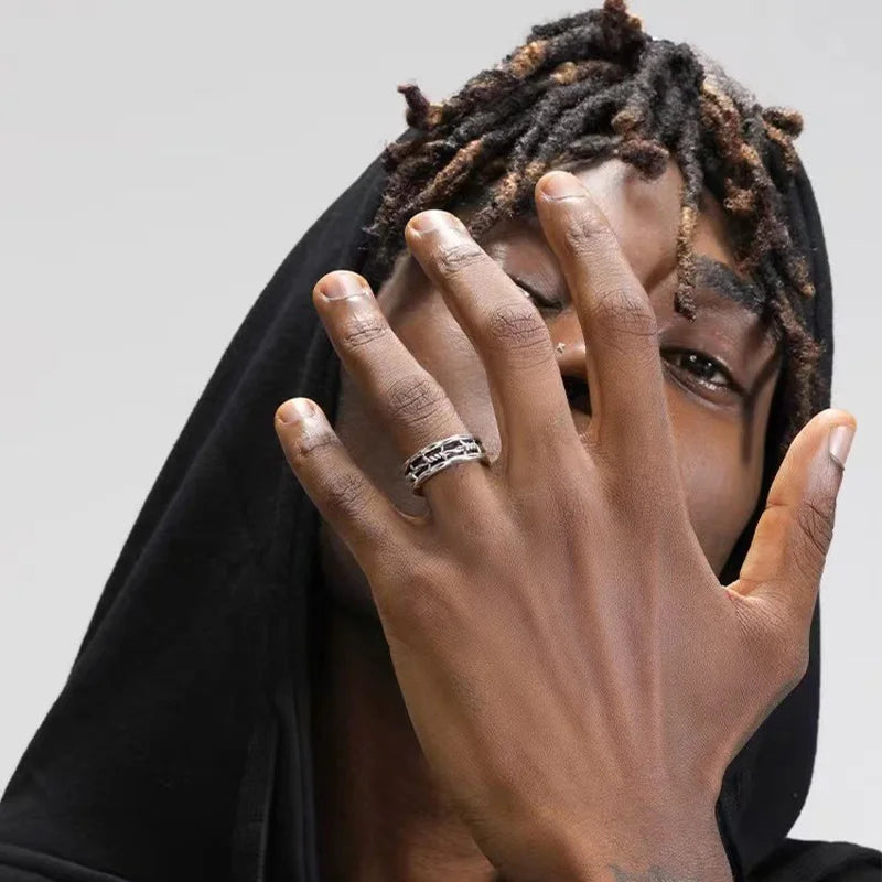 Retro Hollow Twisted Rope Ring For Men Punk Gothic Rock Hiphop Designer Open Ring Handmade Jewelry Biker Accessories Unisex Gift