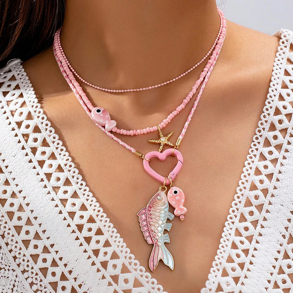 Summer Vacation Beach Colorful Ceramic Pearl Fish Women's Necklace