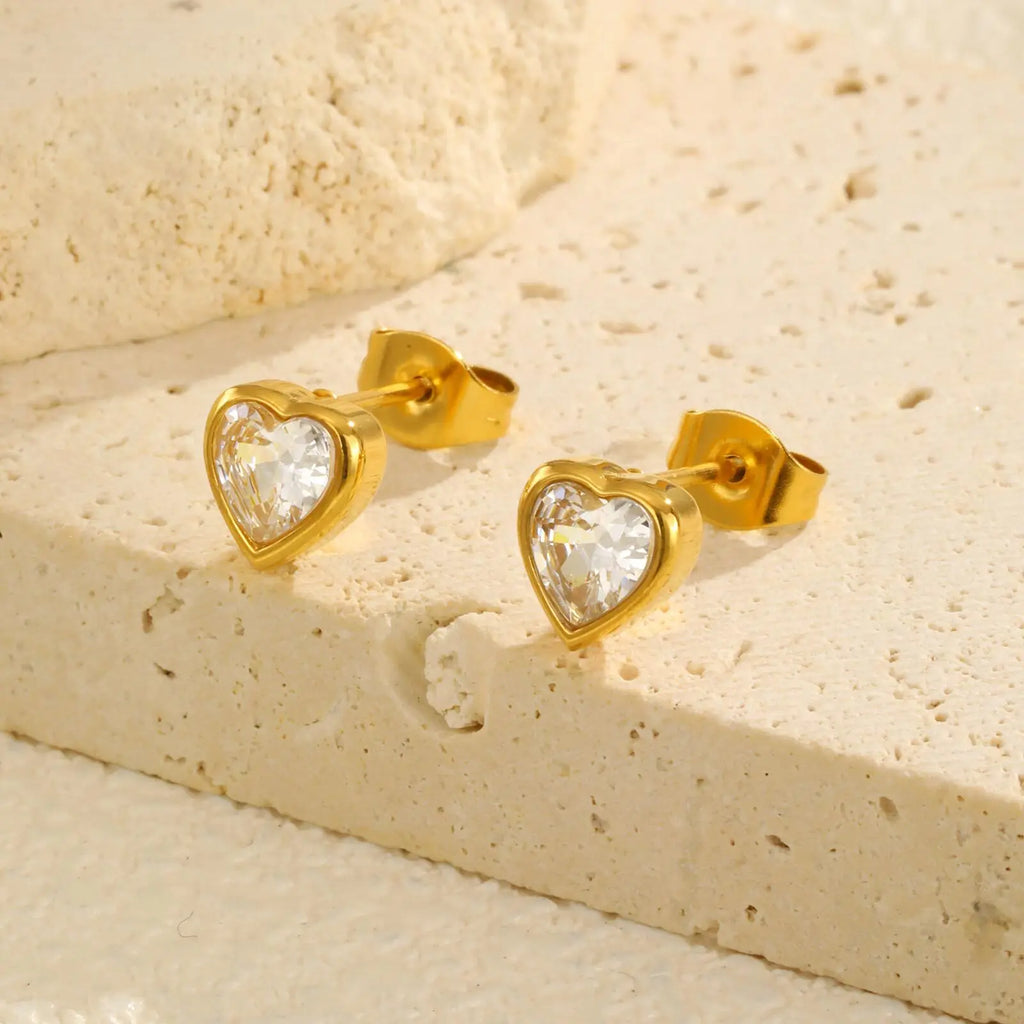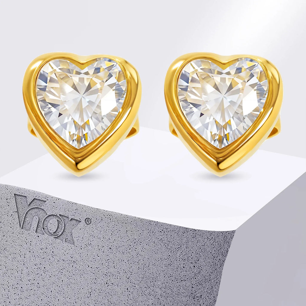 Vnox Love Cubic Zircon Heart Earring For Women Stainless Steel Jewelry To Party Gold Plated Elegant 1 Pair Earrings Holiday Gift