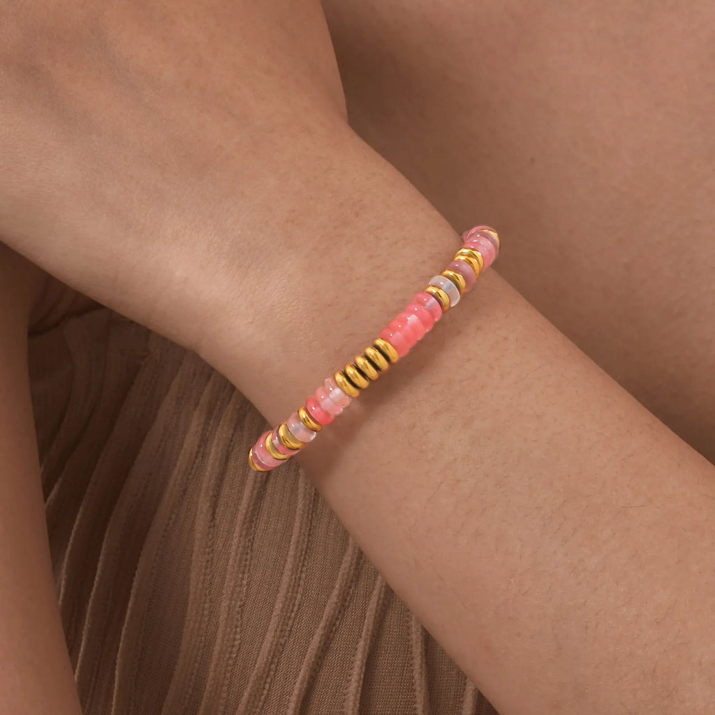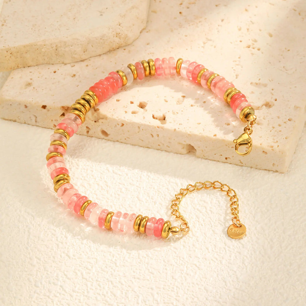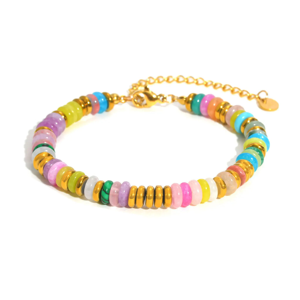Vnox Multicolor Natural Stone Women's Bracelet Stainless Steel Gold Plated Flat Bead Chain Bracelet Female Jewelry Accessories