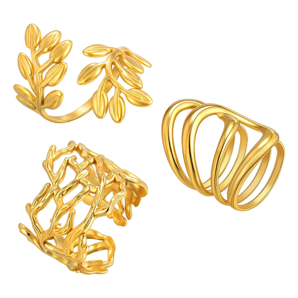 Vnox New Design Irregular Unusual Ring For Women,Stainless Steel Female Fashion Daily Party Jewelry,Aesthetic Style Finger Ring