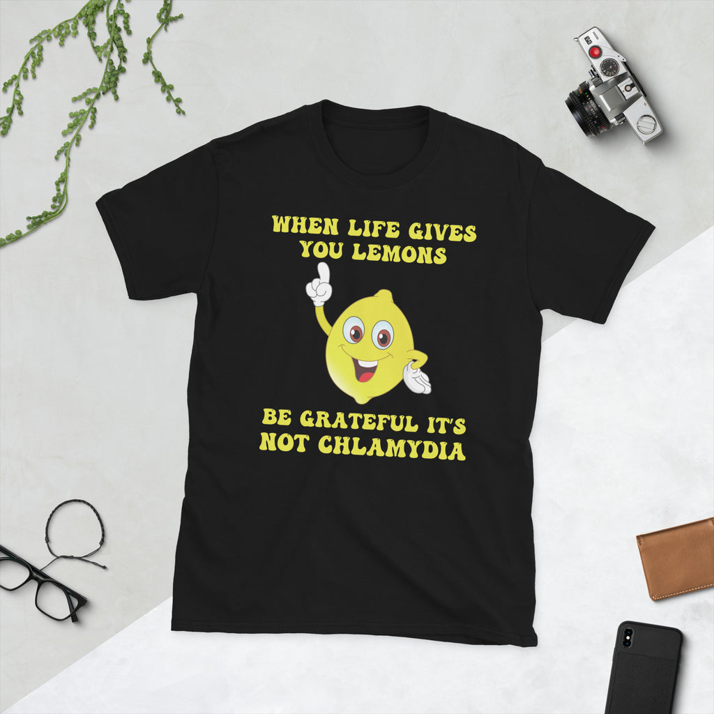 Wenn das Leben dir Zitronen gibt, sei dankbar, es ist keine Chlamydien, unangemessenes Shirt, sarkastisches T-Shirt, lustiges Meme-T-Shirt, ironisches Shirt, beleidigendes T-Shirt