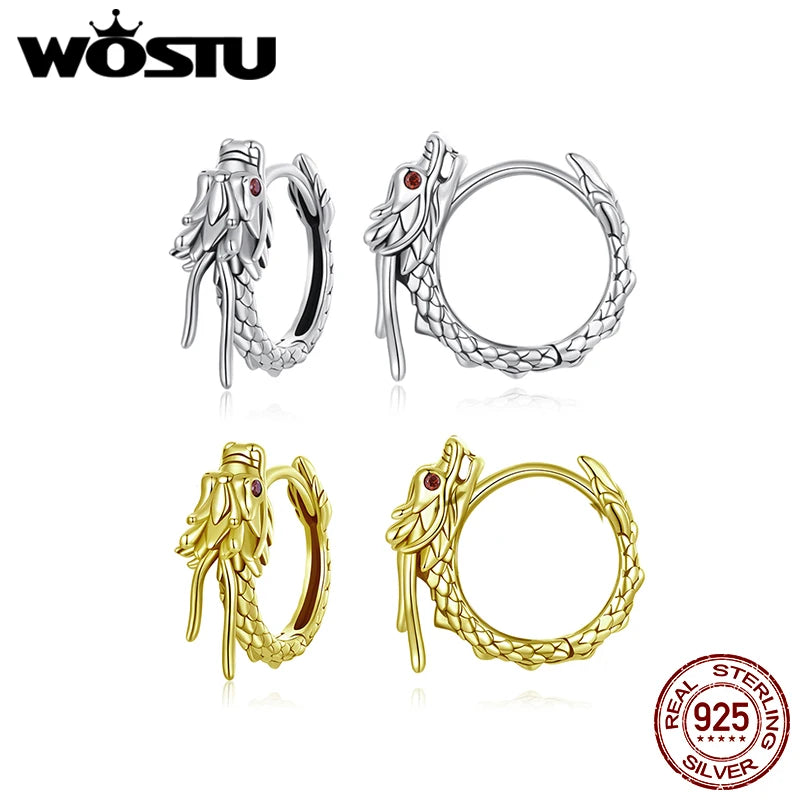 WOSTU Vintage 925 Sterling Silver Dragon Hoop Earrings Women 18K Gold Lucky Gothic Animal Dragon Punk Hoops Cool Birthday gift