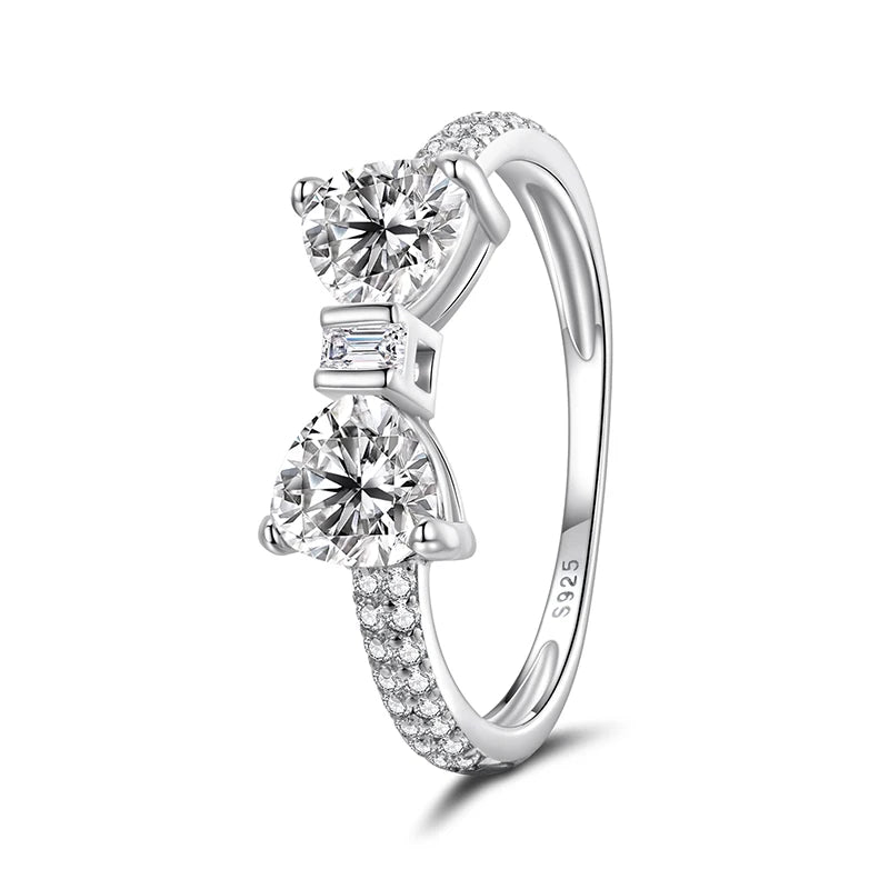 WOSTU Wedding Jewelry Set 925 Sterling Silver Clear CZ Bowknot Necklace Earrings Ring Sweet Bow Knot Jewelry Gift For Girl Lover
