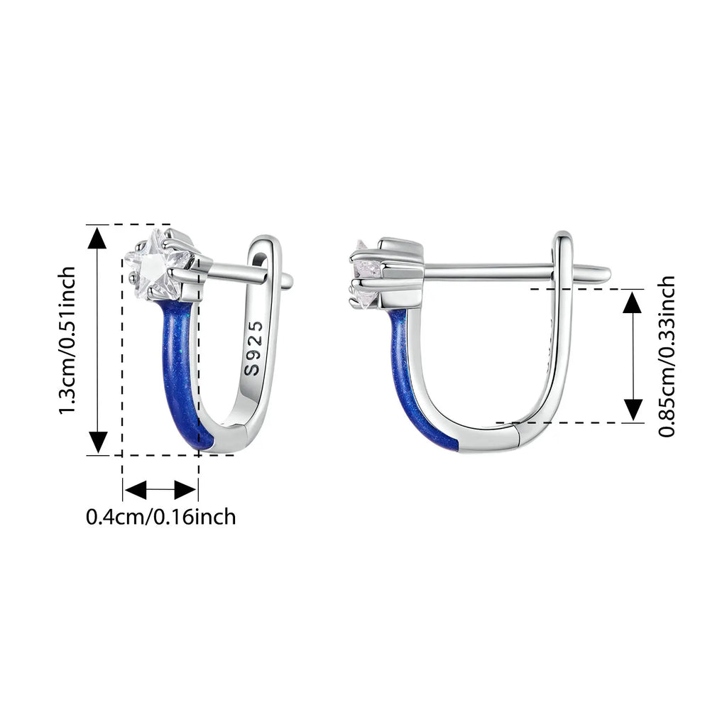 BAMOER U Shape Star Ear Buckles Blue Enamel Hypoallergenic Stud Earrings for Women Teen Girls Bright Pave CZ Jewelry Gift
