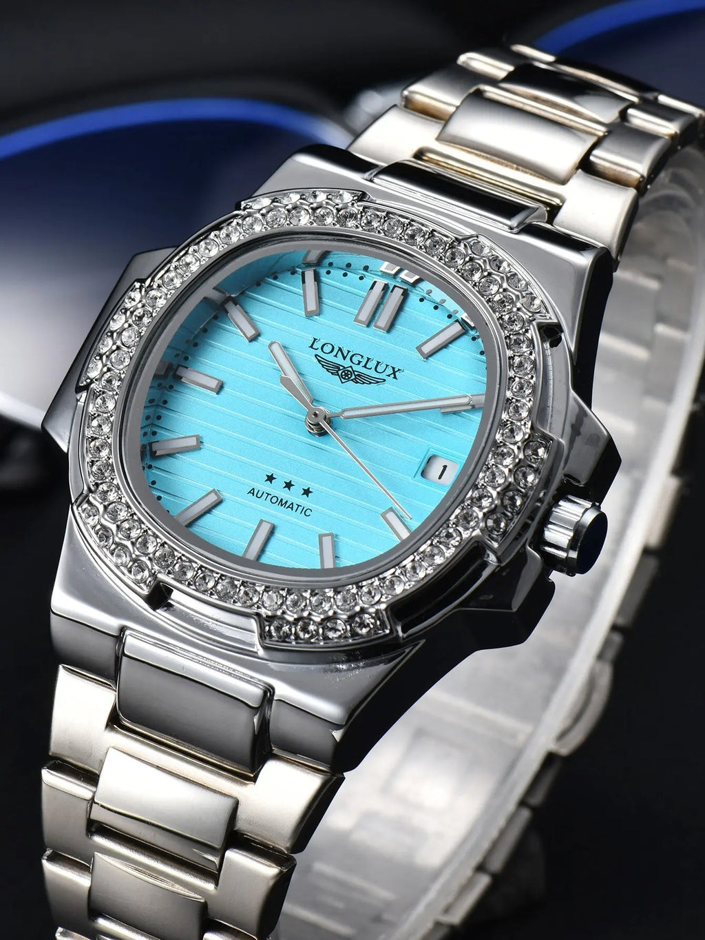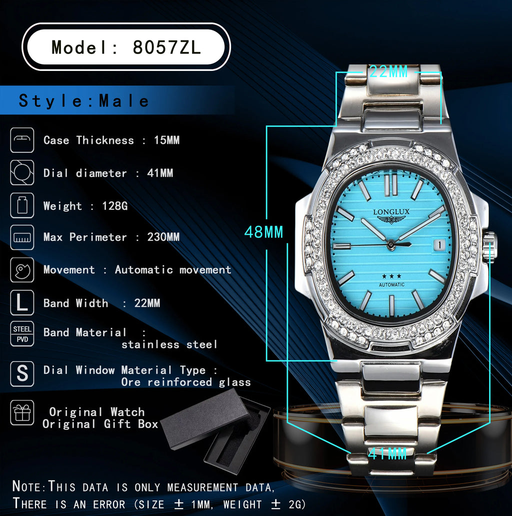 LONGLUX automatic man watch diamond watch luxury stainless steel wholesale mechanical watches day date waterproof man watch