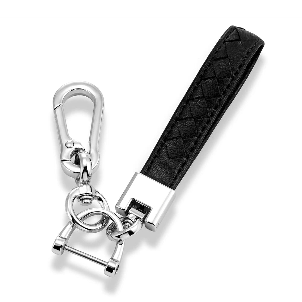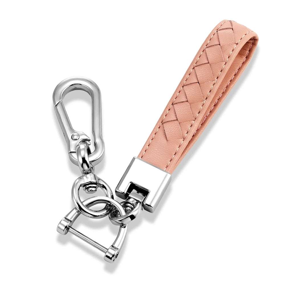 MKENDN Metal Key Chain With Keyring Handmade Woven Leather Rope Car Key Holder Friendship Gift For Best Friend