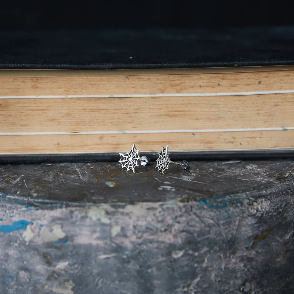 MKENDN Neo-Gothic Style 100% 925 Sterling Silver Creative Retro Spider Web Stud Earrings Personality Minimalist Ear Jewelry