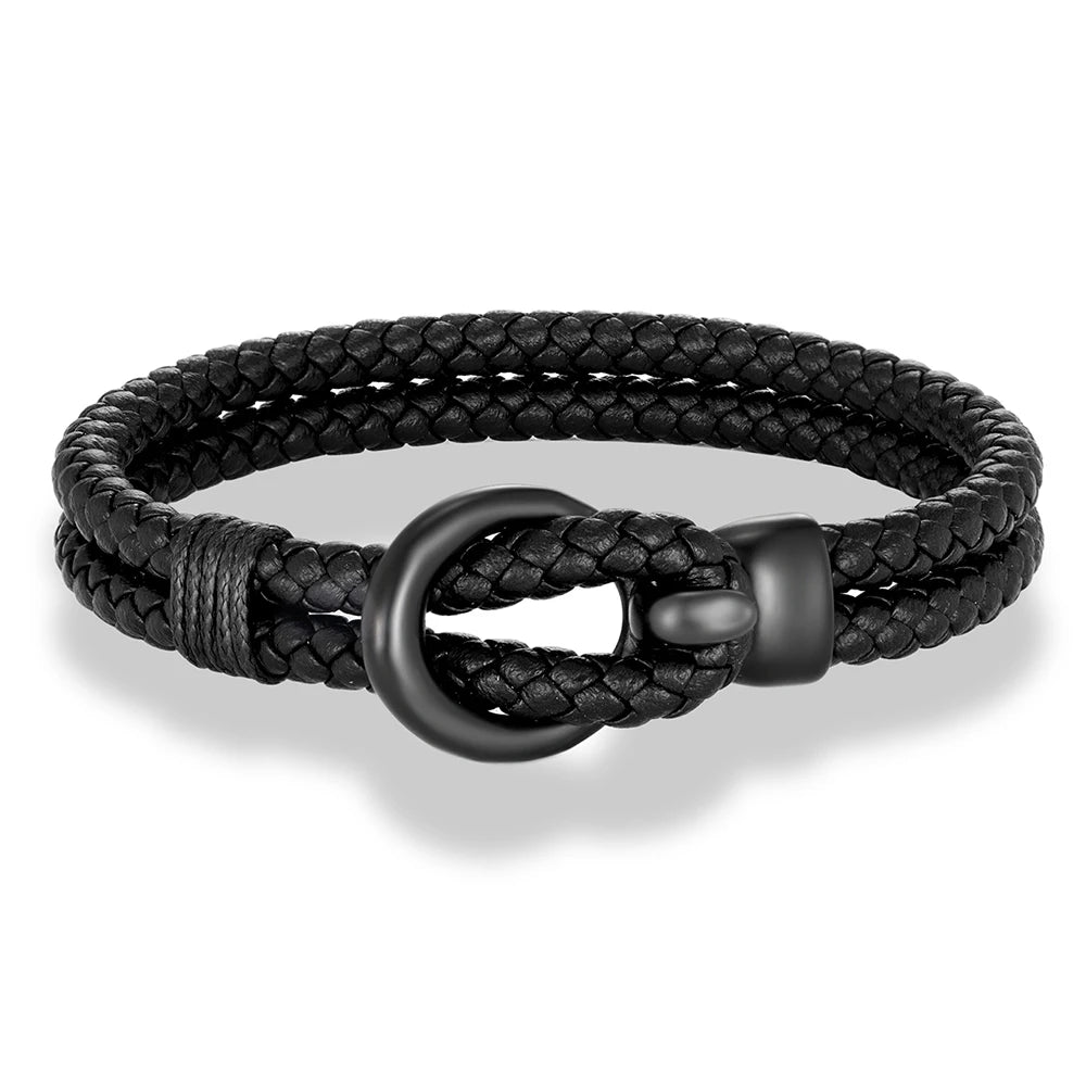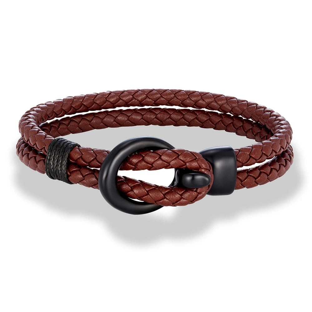 MKENDN New Braided Leather Men Bracelet Classic Hand-woven Hook Buckle Double-layer Leather Bracelet For Men Jewelry Gift