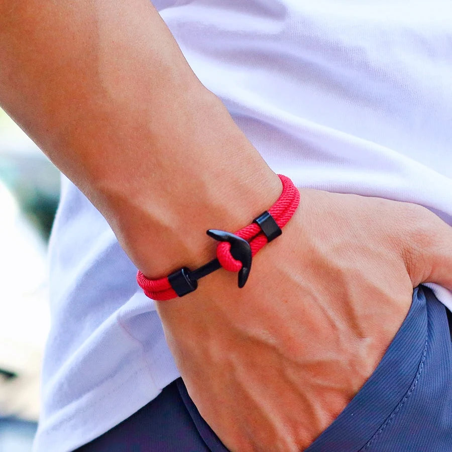 New Men Anchor Bracelet 2025 Handcrafted Nautical Wrap Rope Braslet Beach Surfing Casual Jewelry Lucky Red Thread Braclet Joias