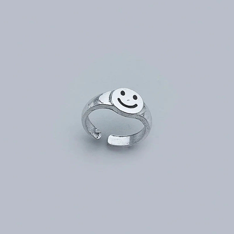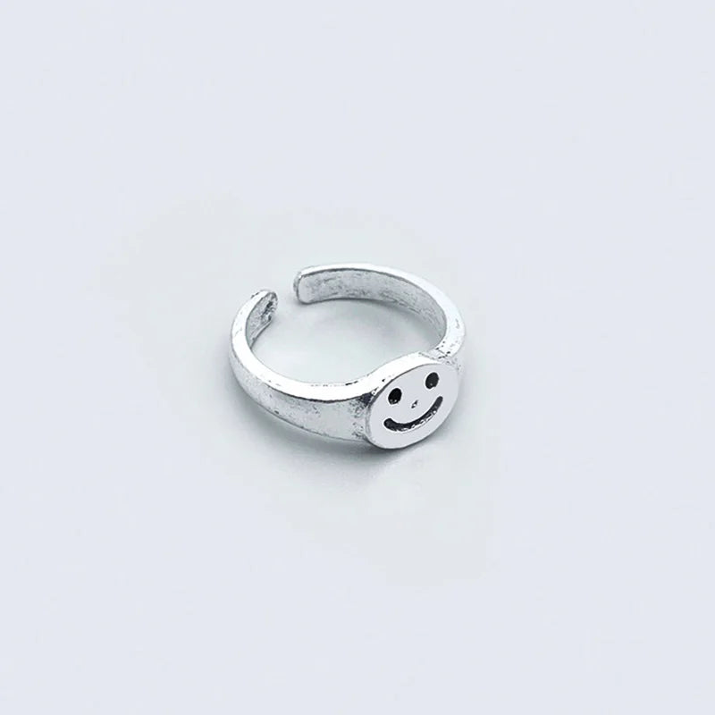 Retro Smile Face Ring For Men Women Silver Color Punk Gothic Rock Hiphop Open Ring Handmade Designer Jewelry Unisex Accessories