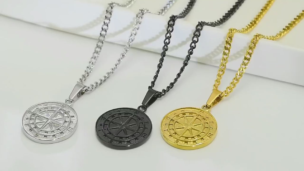 Stainless Steel Nautical Compass Pendant Necklaces