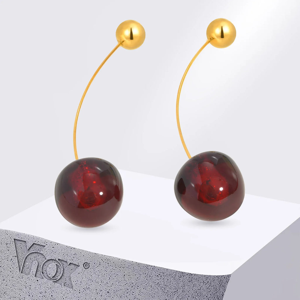 Vnox Vivid 3D Cherry Earrings, Fashion New Cute Fruit Ear Jewelry, 1 Pair Girls Trendy Accessory