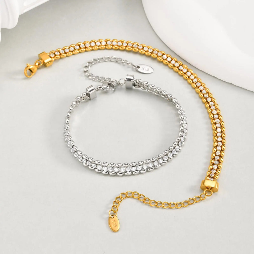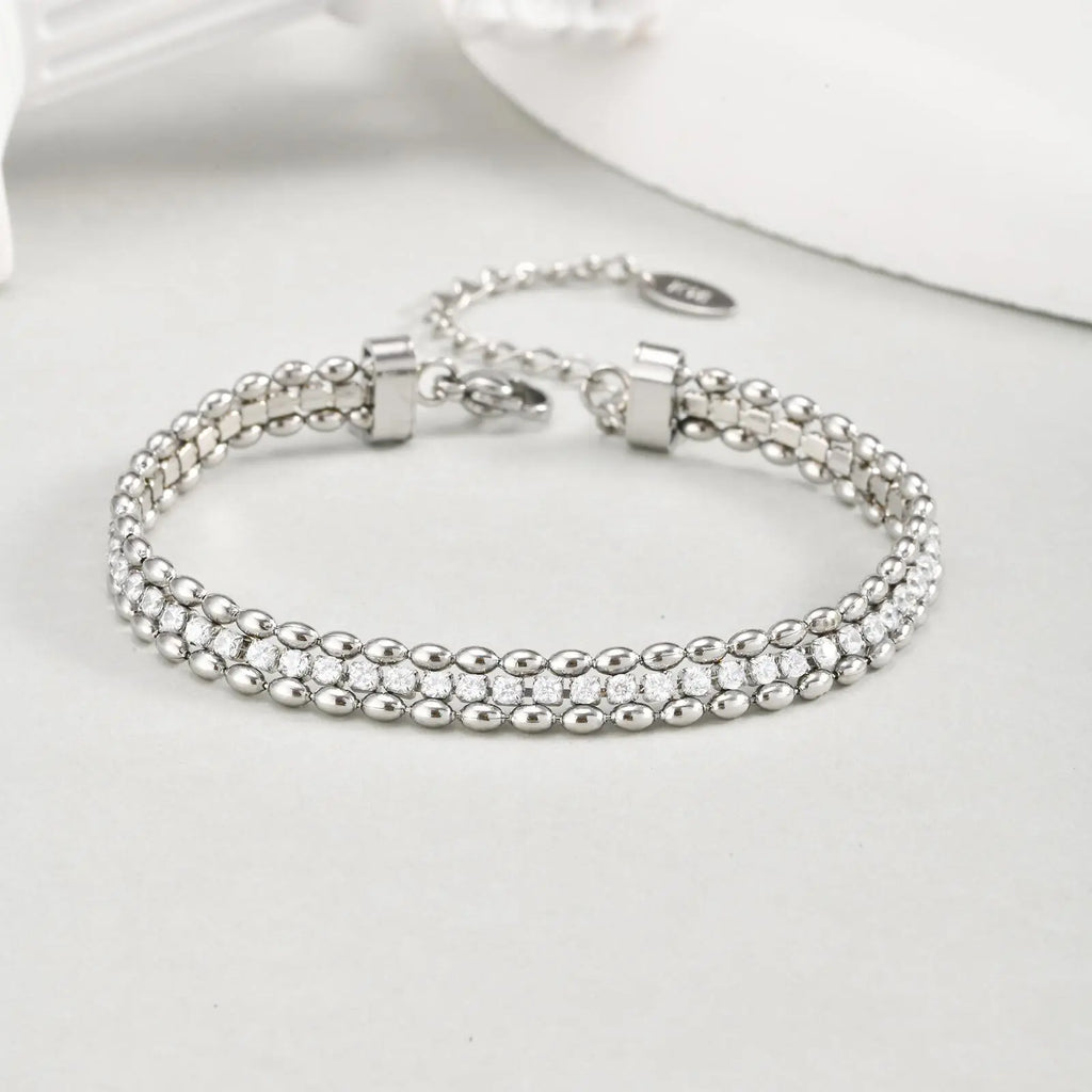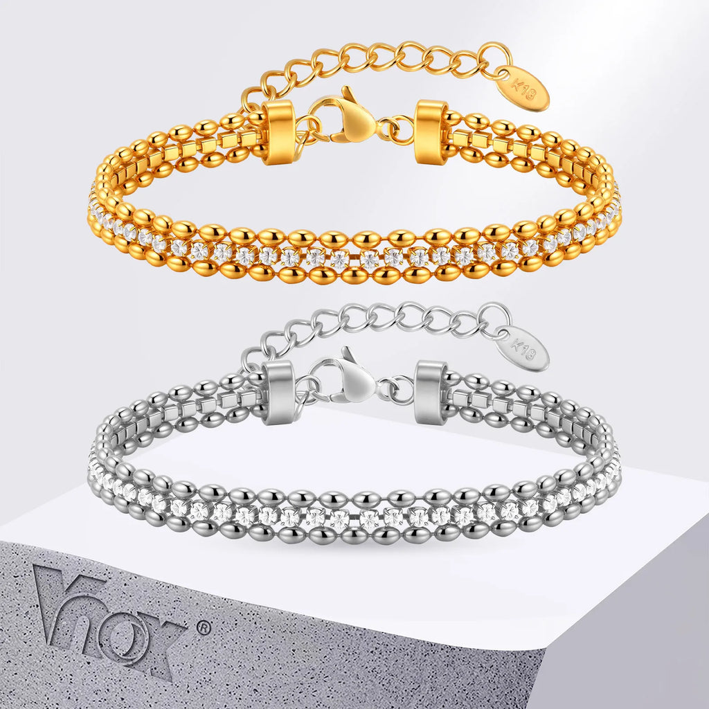 Vnox Women Gold Silver Color Woven Cubic Zirconia Bracelet,Stainless Steel Double Beads Chain Jewelry Accessories Charm Bracelet