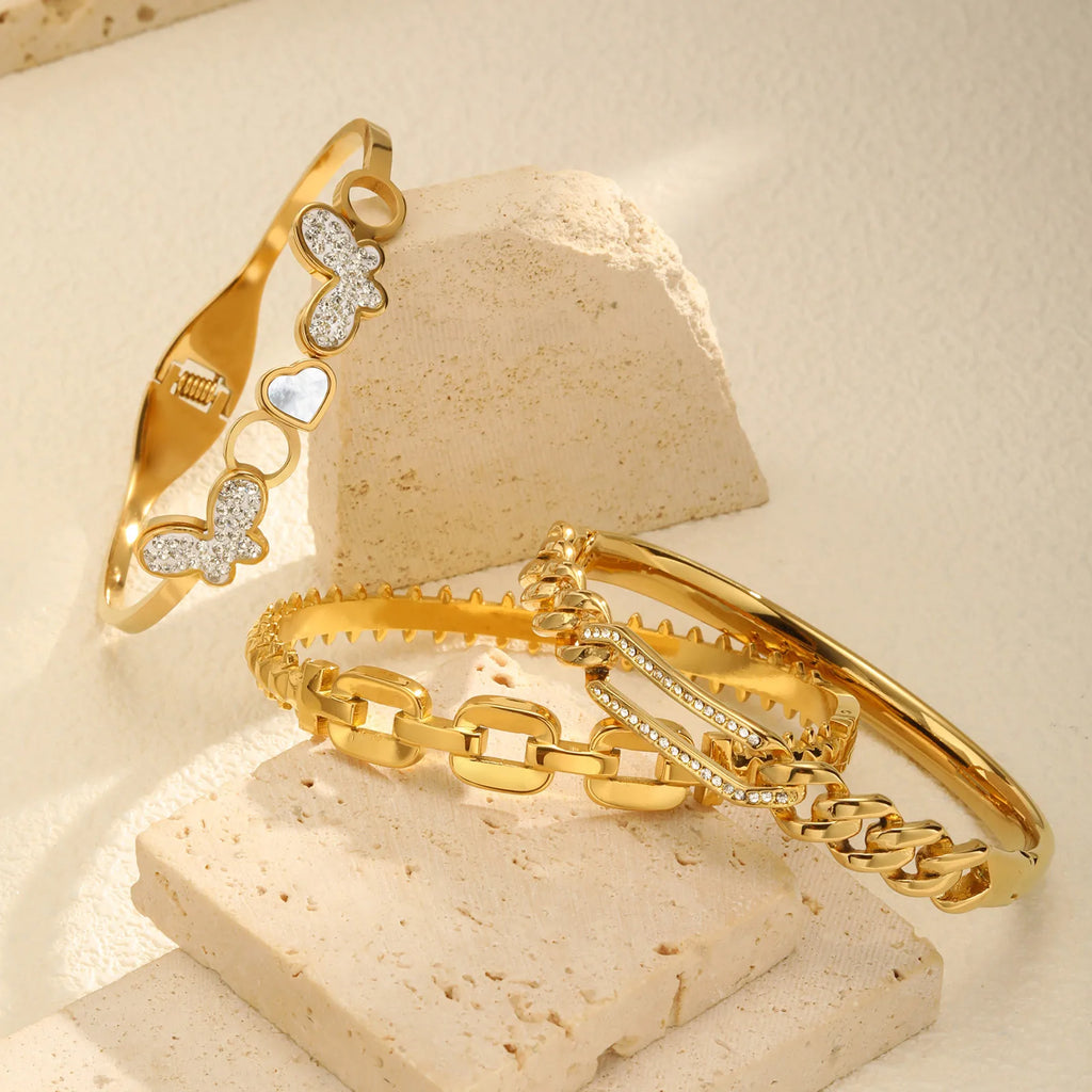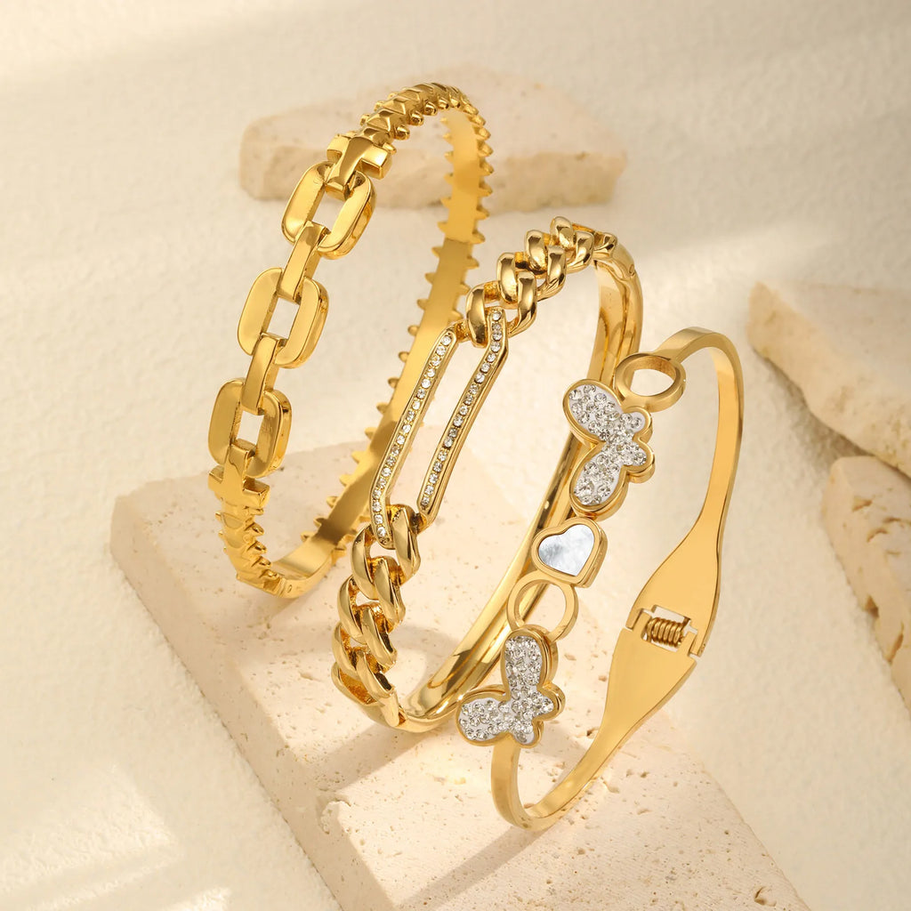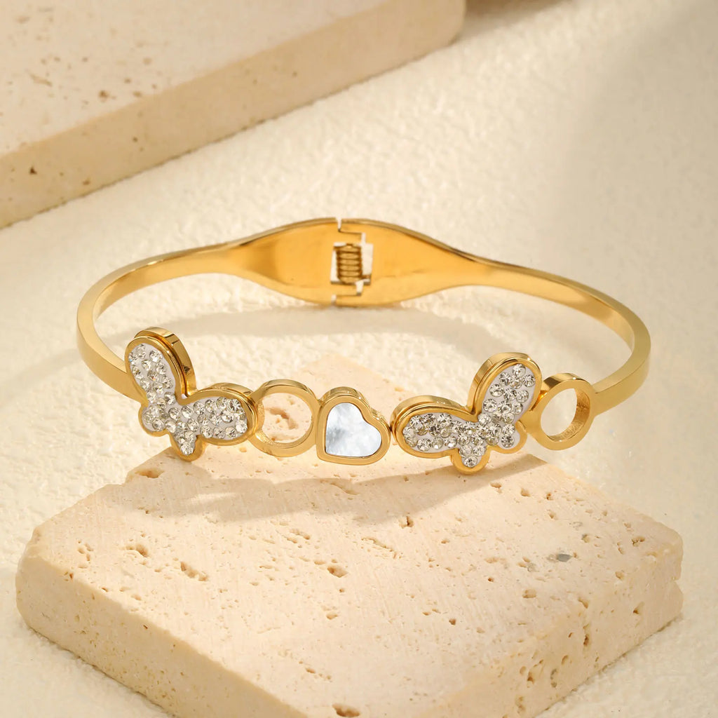 Vnox Women's Hand Jewelry Bracelet Stainless Steel Cute Heart Butterfly Bangle Dainty Rhinestones Accessories Fashion Party