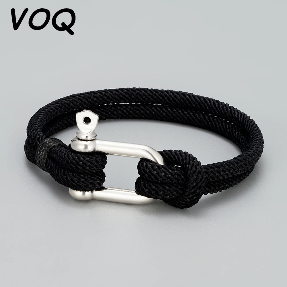 VOQ 2021 Summer Outdoor Style Milan Rope Bracelets Stainless Steel U-shaped D-shaped Buckle Bracelet Fashion Simple Jewelry