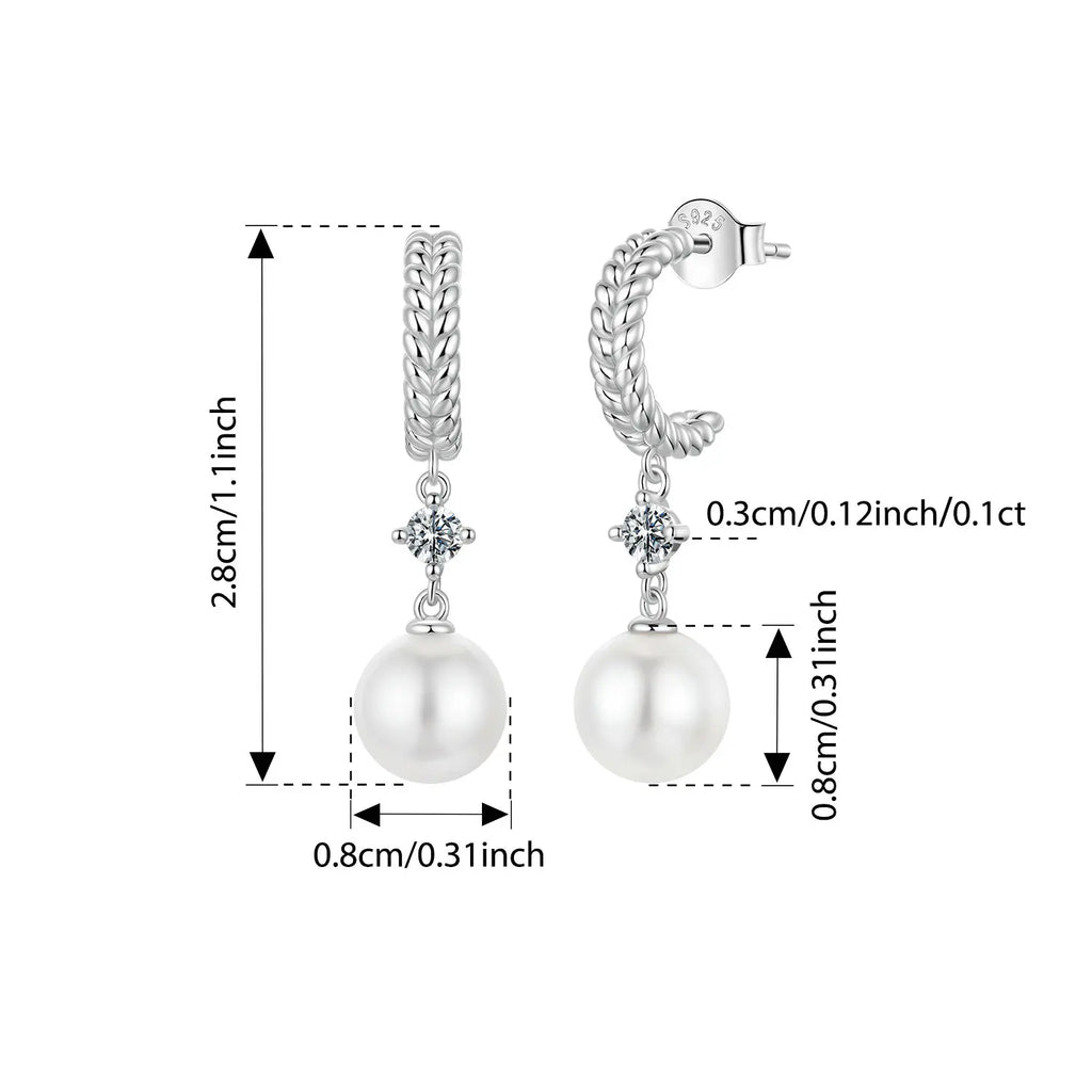 WOSTU 0.2CT Moissanite & Pearl Drop Stud Earrings For Women, Braided Dangle Earrings Wedding Engagement Party Jewelry Gift