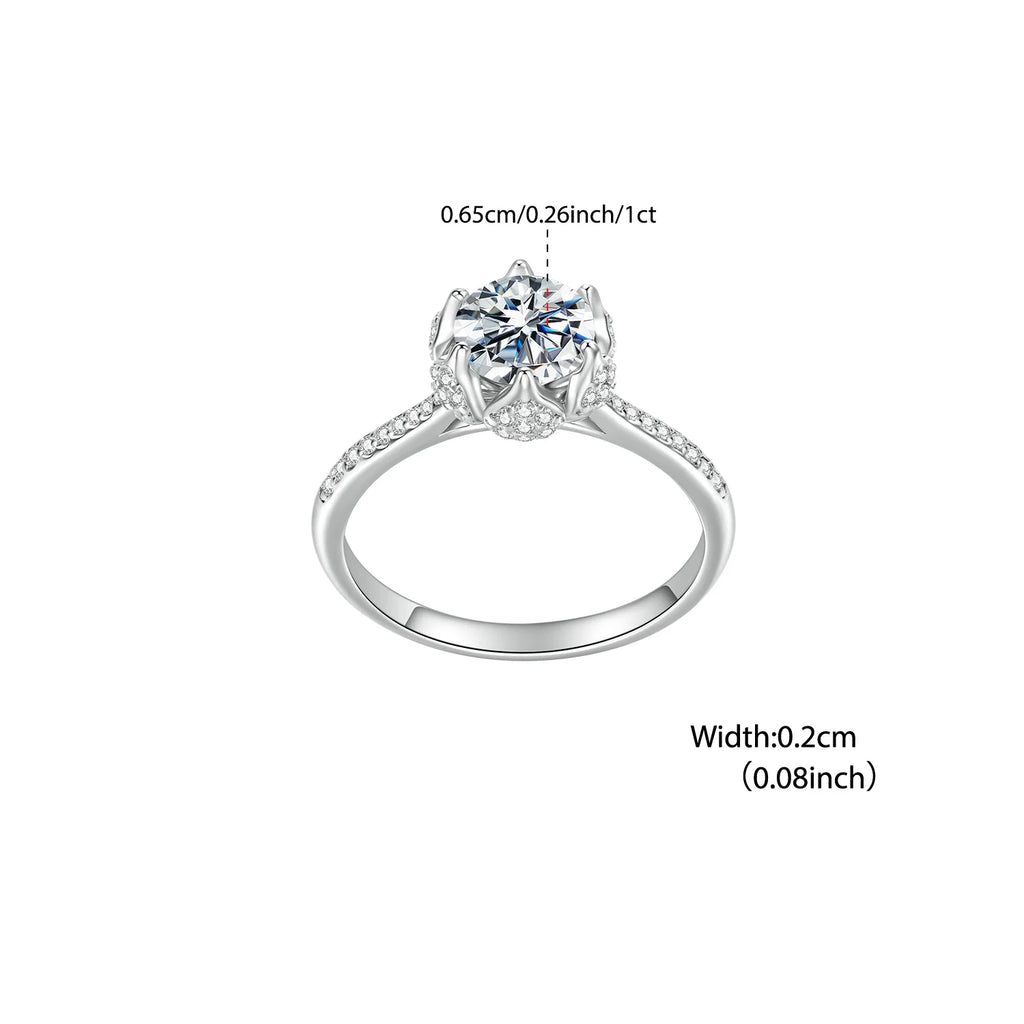 WOSTU 1CT Moissanite Ring Floral Core White Gold Luxury Original 925 Sterling Silver For Women Engagement Wedding Fine Jewelry