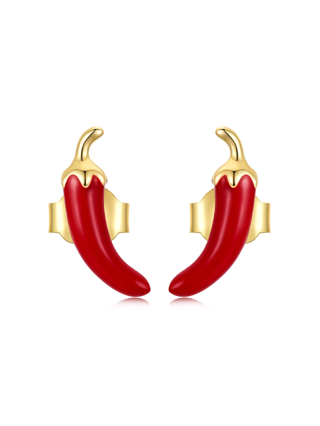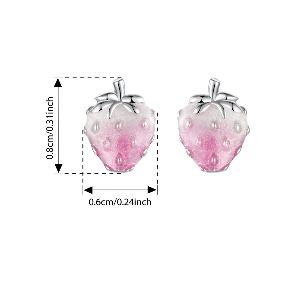 WOSTU 925 Sterling Silver Cherries Earring Strawberry Piercing Red Apple Banana Fruit Cute for Women Birthday Daily Fine Jewelry