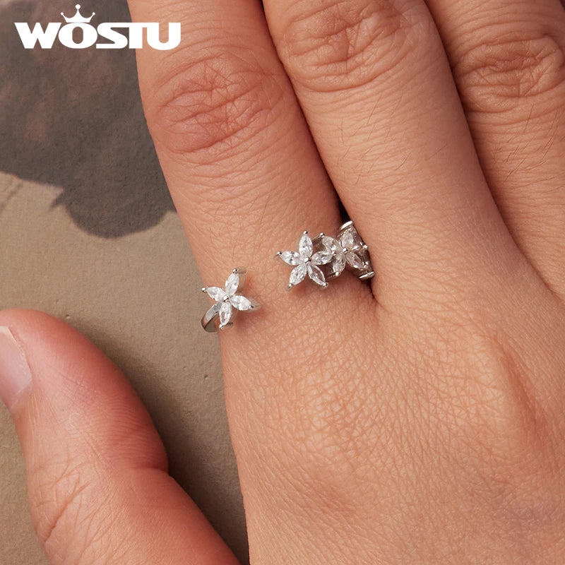 WOSTU 925 Sterling Silver Clear Zircon Mini Flower Opening Ring For Women , Lovely Cubic zirconia Engagement Rings Fine Jewelry