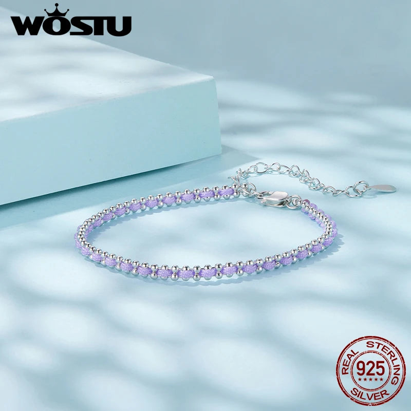 WOSTU 925 Sterling Silver Handmade Purple Cotton Rope Sport Set Bracelets for Women Mystic Braided Bracelets Girl Birthday Gift