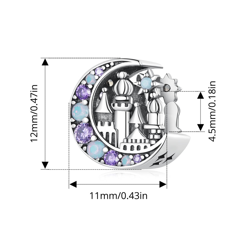 WOSTU 925 Sterling Silver Magic Castle Pendant Dark Purple Beads Fit Original Bracelet for Women DIY Punk Gift Fairy Tale Girls