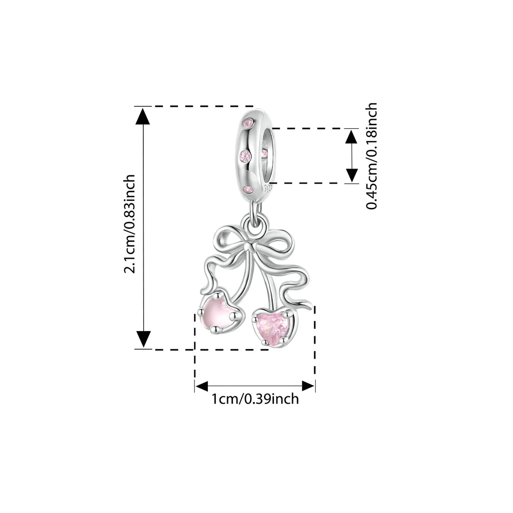 WOSTU 925 Sterling Silver Pink Cherry Pendant Bow White Gold Charm Original Sweet Fit for Women DIY Birthday Daily Fine Jewelry
