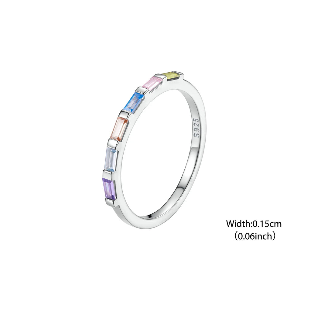 WOSTU 925 Sterling Silver Rainbow Single Ring White Gold CZ Colorful Lively Original for Women Girl Birthday Fine Jewelry Gift
