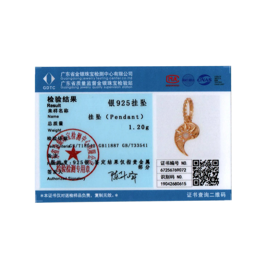 Certificate Number: 925 Sterling Silver Cat Pendant