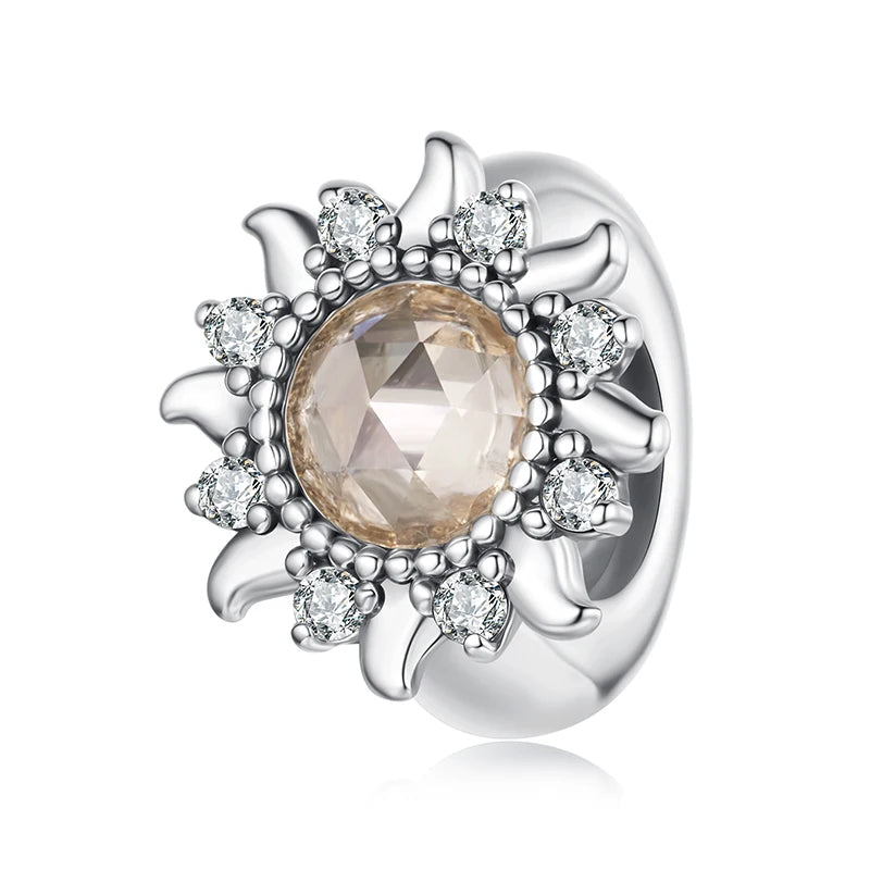 WOSTU 925 Sterling Silver Sunflower Silicone Spacer Beads Zircon Clip Charms Turtle Safty Chains Fit Original Bracelet Necklace