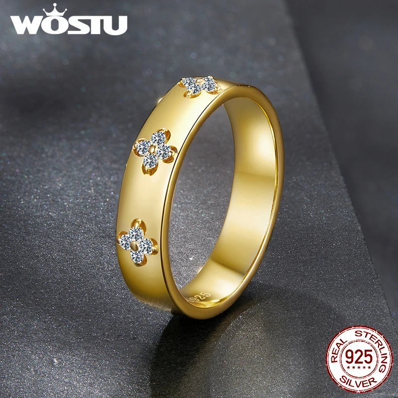 WOSTU Moissanite Wedding Ring For Women 925 Silver 14K Gold Lab Diamond Lucky Clover Wide Eternity Rings Engagement Party Gift